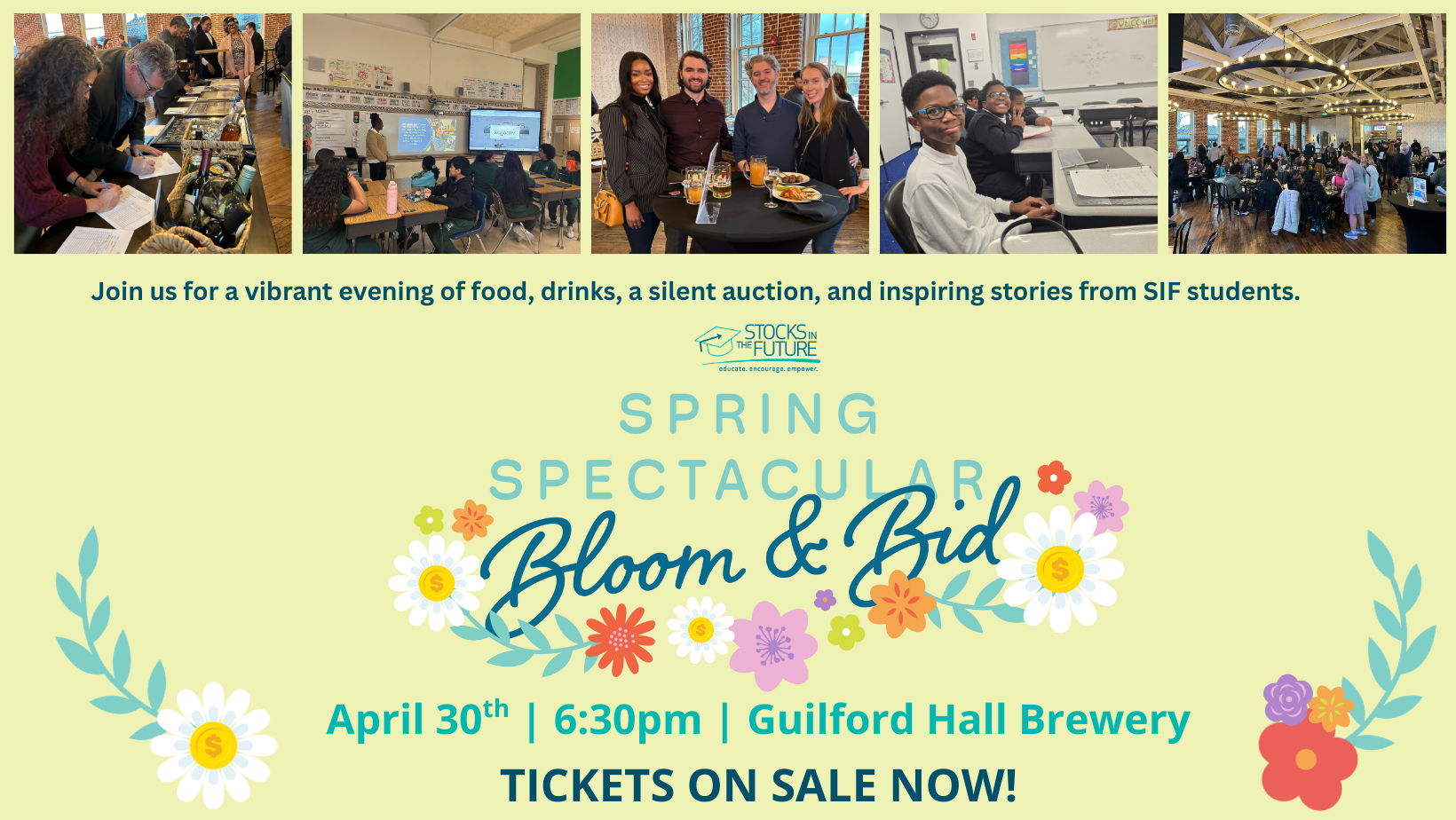 Join us for the Spring Spectacular: Bloom & Bid, an evening filled with great food, drinks, a lively silent auction, and inspiring stories from Stocks in the Future students.